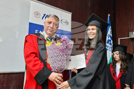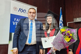 Стара Загора (26 май 2023) На тържествена церемония аулата на Тракийски университет днес своите дипломи получават 120 ветеринарни лекари. От тях своето обучение на български език са провели 94 ветеринарни лекари сред които 7 чуждестранни студенти от Гърция и Кипър. Дипломи получиха и 26 абсолвенти, обучавали се на английски език. На снимката: отличничка на випуска Симона Стефанова.