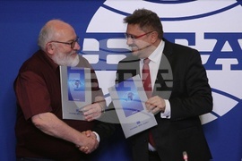 София (26 май 2023) В Националния пресклуб на БТА - София се провежда пресконференция на Института за етнология и фолклористика с Етнографски музей към БАН (ИЕФЕМ - БАН) на тема: „Разказвачи на истории - Европа и опазването на локално културно наследство". На пресконференцията се представя проекта MEDITELLER - опазване, представяне и промотиране на локално културно наследство в сътрудничество между научни институции от България, Испания, Италия и Полша. На снимката: Подписване на споразумение за партньорство между БТА и ИЕФЕМ - БАН. Договора подписват за БТА генералният директор на БТА Кирил Вълчев и директорът на ИЕФЕМ - БАН проф. д-р Владимир Пенчев от страна на ИЕФЕМ - БАН.