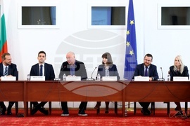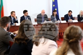 София (5 юни 2023) Председателят на Народното събрание Росен Желязков открива кръгла маса на тема „Ролята на младите хора за бъдещето на Европа“. Форумът, който е организиран от народния представител от парламентарната група „Продължаваме промяната – Демократична България“ Деница Симеонова, се провежда в зала „Изток“ на Народното събрание. На снимката (от ляво надясно): ръководителят на Бюро на Европейския парламент в България Теодор Стойчев, зам.-председателят на Народното събрание Никола Минчев, председателят на Народното събрание Росен Желязков, народният представител от ПП - ДБ Деница Симеонова, Бойко Благоев - представителство на Европейската комисия в България, Кристина Ненова.
