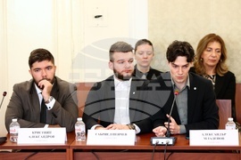 София (5 юни 2023) Председателят на Народното събрание Росен Желязков открива кръгла маса на тема „Ролята на младите хора за бъдещето на Европа“. Форумът, който е организиран от народния представител от парламентарната група „Продължаваме промяната – Демократична България“ Деница Симеонова, се провежда в зала „Изток“ на Народното събрание. На снимката (от ляво надясно): Кристиян Александров, Габриел Пенчев, Александър Младенов.