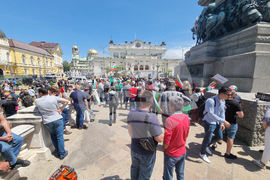 София (6 юни 2023) Представители и симпатизанти на "Възраждане" протестират пред Народното събрание.