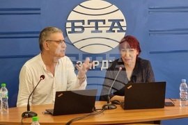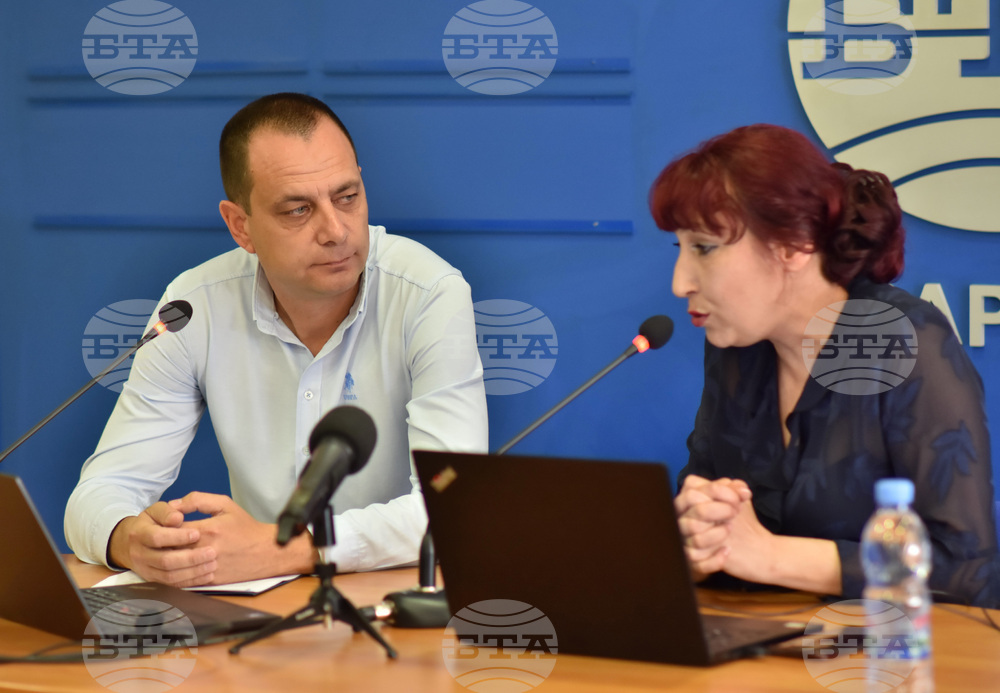 Пазарджик (19 юни 2023) Конференция по проект „Европа в България: Общо бъдеще“, изпълняван от Българската телеграфна агенция (БТА) с подкрепата на Европейската комисия, се провежда днес в Пресклуба на БТА в Пазарджик. На снимката: директорът на Дирекция „Специализирана администрация“ на Община Брацигово инж. Анелия Методиева и координаторът на проекта и кореспондент на БТА Николета Манджукова.