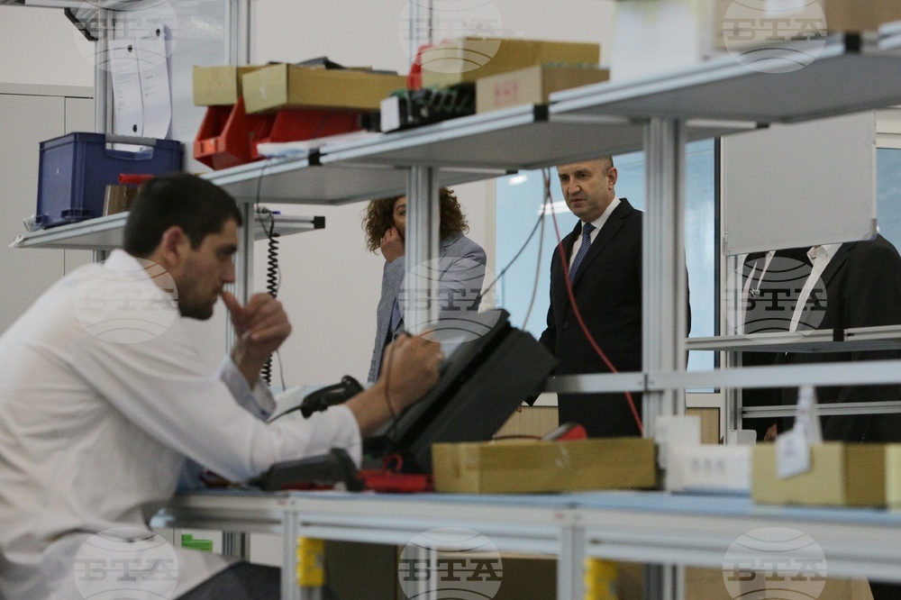 София (20 юни 2023) На ул. „Илиянско шосе“ №2 се открива на нова фабрика на компанията за сигнално-охранителна и пожароизвестителна техника „Телетек Електроникс“ ЕАД. Компанията е основана през 1991 г. и бързо се утвърждава като лидер на вътрешния и международен пазар. На снимката: президентът Румен Радев.