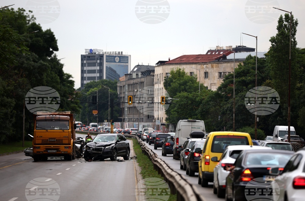 София (5 юли 2023) Катастрофа между две коли и камион на булевард "Ген. Данаил Николаев" в посока "Сточна гара".