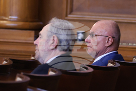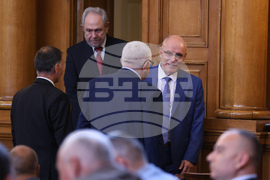 София (18 юли 2023) В сградата на парламента се провежда извънредно заседание на Народното събрание. На снимката (от ляво надясно): кандидатът за управител на БНБ издигнат от ГЕРБ-СДС Димитър Радев, кандидатът за управител на БНБ издигнат от "Възраждане" Любомир Христов.