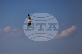 София (18 юли 2023) Щъркел лети край софийското село Железница.