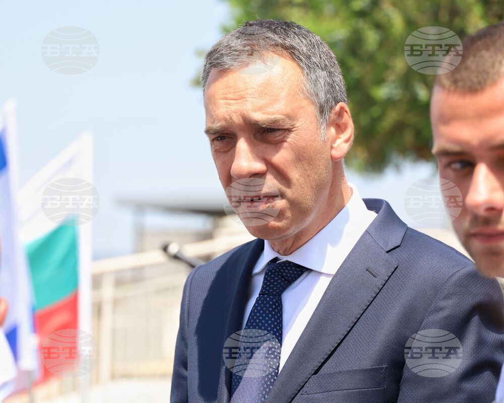 Бургас (18 юли 2023) На възпоменателна церемония на летището в бургаския квартал “Сарафово” се отбелязват 11 години от терористичния акт. При атентата на 18 юли 2012г. загинаха един български и петима израелски граждани. На церемонията присъстват близки на жертвите, представители на държавни и местни институции, на еврейската общност в България и на дипломатическия корпус. Събитието протича при високи мерки за сигурност. На снимката (от ляво надясно): кметът на Община Бургас Димитър Николов, президентът на Република България Румен Радев, посланикът на Израел Йорам Елрон.