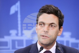 София (28 юли 2023) Представители на ПП-ДБ дадват брифинг в Народното събрание. На снимката: зам.-председателят на НС Никола Минчев.