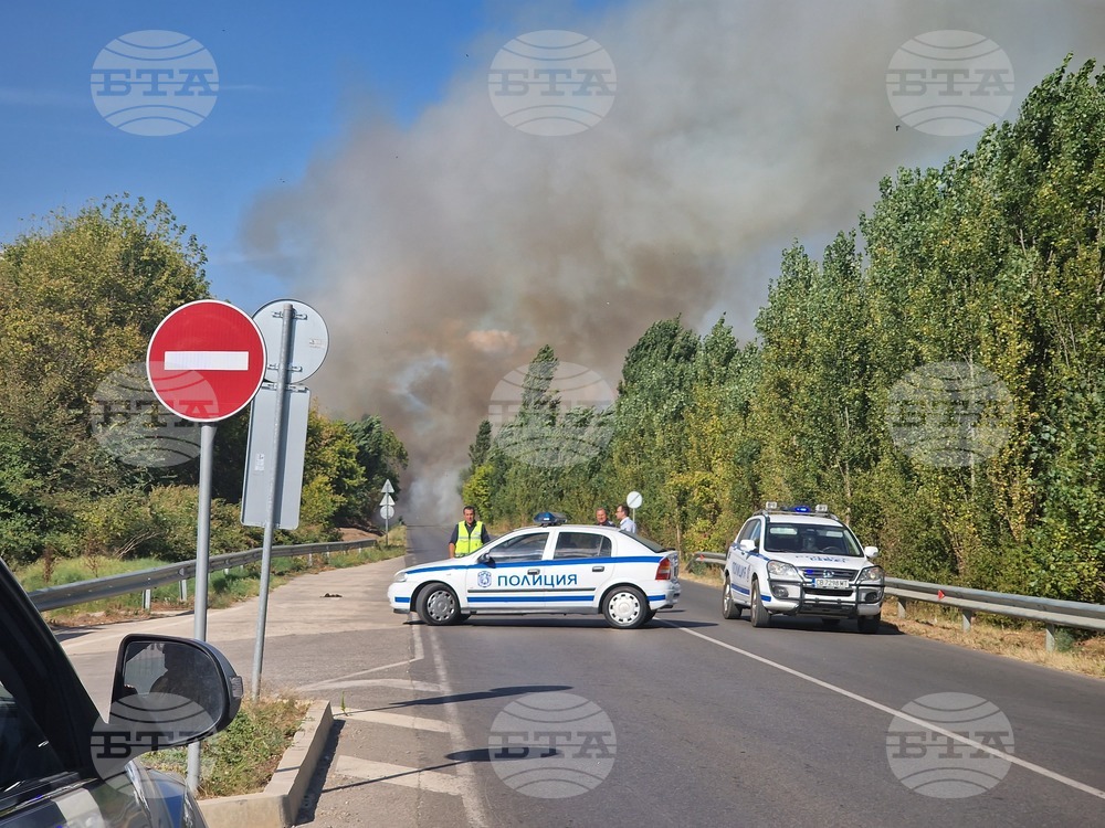Село Кърналово (8 август 2023) Затворен за движение е пътят между Петрич и Сандански, при борсата на село Кърналово, заради голям пожар в района.