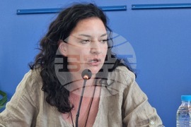 Ловеч (21 август 2023) В Националния пресклуб на БТА в Ловеч се състоя среща-разговор, част от инициативата "Алеко днес" на Българската телеграфна агенция. Кампанията е посветена на 160 години от рождението на Алеко Константинов и включва поредица от дискусии в пресклубовете на БТА в цялата страна с модератор литературният изследовател, критик и преподавател по теория на литературата в Нов български университет доц. Йордан Ефтимов. В срещата в Ловеч участва директорът на дирекция ЛИК в БТА доц. Георги Лозанов. Останалите участници бяха главеният уредник в Регионален исторически музей (РИМ) - Ловеч Елена Георгиева, журналистът Милко Недялков, преподавателят по български език и литература, журналист, председател на Клуб на дейците на културата - Ловеч Жанина Илиева (на снимката), директорът на Драматичен театър – Ловеч Биляна Петрова и психологът Ивайло Георгиев. Снимка: Даниела Балабанова/БТА (ЕД)