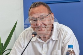Ловеч (21 август 2023) В Националния пресклуб на БТА в Ловеч се състоя среща-разговор, част от инициативата "Алеко днес" на Българската телеграфна агенция. Кампанията е посветена на 160 години от рождението на Алеко Константинов и включва поредица от дискусии в пресклубовете на БТА в цялата страна с модератор литературният изследовател, критик и преподавател по теория на литературата в Нов български университет доц. Йордан Ефтимов. В срещата в Ловеч участва директорът на дирекция ЛИК в БТА доц. Георги Лозанов (на снимката). Останалите участници бяха главеният уредник в Регионален исторически музей (РИМ) - Ловеч Елена Георгиева, журналистът Милко Недялков, преподавателят по български език и литература, журналист, председател на Клуб на дейците на културата - Ловеч Жанина Илиева, директорът на Драматичен театър – Ловеч Биляна Петрова и психологът Ивайло Георгиев. Снимка: Даниела Балабанова/БТА (ЕД)
