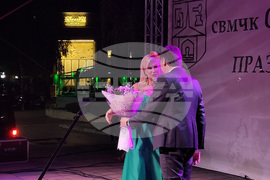 Самоков (22 август 2023) С около 10-минутно музикално пирошоу завършиха честванията от празника на град Самоков. Преди това на самоковската сцена излязоха изпълнителите от рок групата "Сигнал" и народната певица Нелина (на снимката). Кметът на община Самоков Владимир Георгиев подари на Нелина букет с цветя.