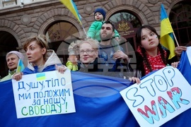 София (24 март 2022) Мирно шествие в подкрепа на Украйна се провежда в столицата. Демонстрантите преминават през "Орлов мост".