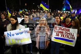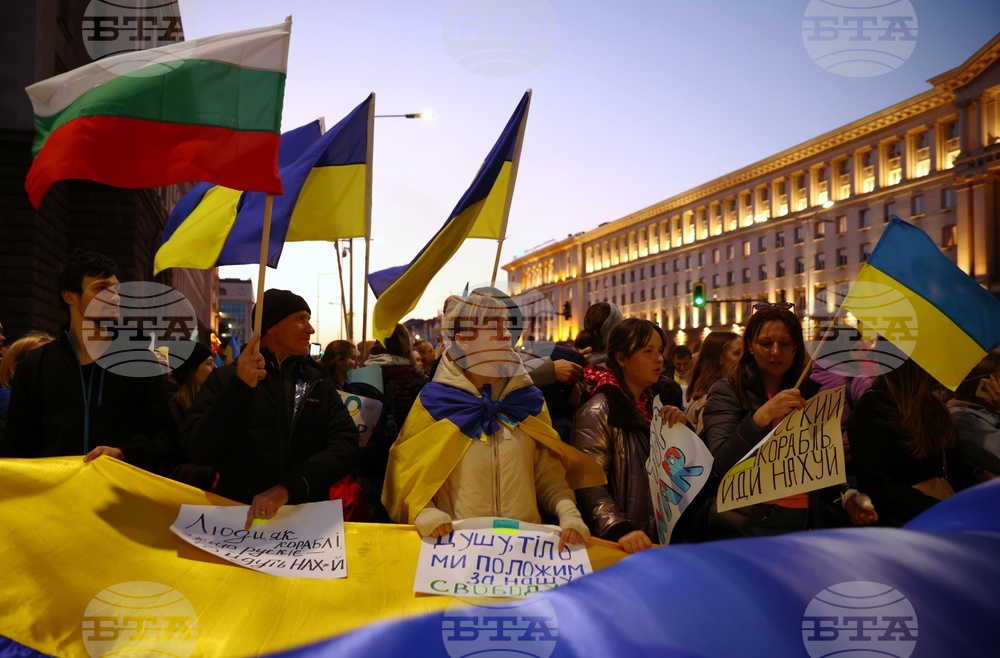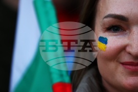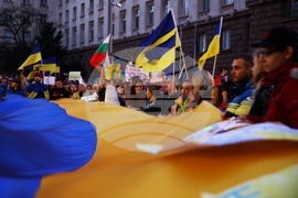 София (24 март 2022) Шествие в подкрепа на Украйна се провежда на площад "Независимост" в столицата.