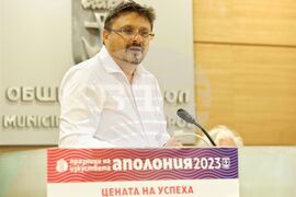 Созопол (5 септември 2023) Супергрупата Фондацията провежда среща разговор с генералния директор на Българска Телеграфна Агенция Кирил Вълчев в сградата на Народно читалище "Отец Паисий 1896". На срещата се представя и новият брой на списание ЛИК, който е посветен на 10 годишнината на групата. Срещата е част от дискусионния формат "Цената на успеха" и е част от празниците на изкуствата "Аполония" 2023. На снимката: Славчо Николов.