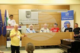 Созопол (5 септември 2023) Супергрупата Фондацията провежда среща разговор с генералния директор на Българска Телеграфна Агенция Кирил Вълчев в сградата на Народно читалище "Отец Паисий 1896". На срещата се представя и новият брой на списание ЛИК, който е посветен на 10 годишнината на групата. Срещата е част от дискусионния формат "Цената на успеха" и е част от празниците на изкуствата "Аполония" 2023. На снимката: журналистът, генерален директор на БТА в периода 1997-2002 г. Панайот Денев.