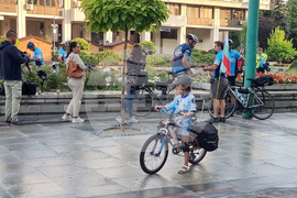 Видин (5 септември 2023) Днес във Видин бе даден стартът на най-дългото масовото изминаване на веломаршрута Дунав Ултра. Това е 10-то юбилейно издание на велопохода. Каузата на събитието е популяризиране на над 110 населени места по поречието на река Дунав и Добруджа, откъдето преминава маршрута, каза организаторът Борис Бегъмов. Над 150 любители колоездачи от седем държави - България, Румъния, Полша, Украйна, Германия, Белгия и Великобритания, се включиха в инициативата. На снимката: участникът в велопохода проф. Антоанета Момчилова.