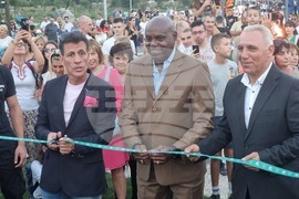 Пазарджик (23 септември 2023) С официална церемония в парк - остров "Свобода" в Пазарджик се открива "Градината на света". На нея присъстват заместник - председателят на народното събрание Росица Кирова, посланици, консули, дипломати, народни представители, изявени български спортисти, сред които Христо Стоичков (в средата), Таня Богомилова - Дангалакова и Ренета Камберова.