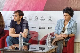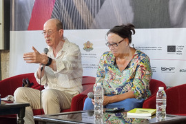 Варна (26 септември 2023) Режисьорът Георги Дюлгеров представи на фестивала "Златна роза" във Варна своя филм "Записки по едно предателство", както и книгата си "Биография на моите филми". С него бяха актьорът Иван Николов, операторът Веселин Христов, продуцентът Владимир Андреев, монтажистката Антония Милчева. Срещата води Гергана Дончева. На снимката (от ляво надясно): Веселин Христов и Антония Милчева.