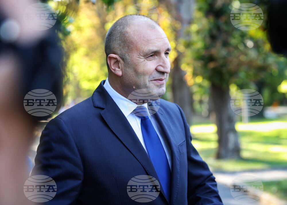 Карнобат (26 септември 2023) Президентът на Република България Румен Радев дава брифинг за медиите по актуални теми. Той е на посещение в Карнобат по повод празника на града.