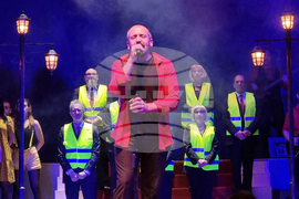 София (1 октомври 2023) Премиера на политическо сатирично кабаре „Долу народа!“ в Сатиричния театър. На снимката: Петър Калчев,