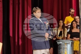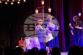 София (1 октомври 2023) Премиера на политическо сатирично кабаре „Долу народа!“ в Сатиричния театър. На снимката: Елена Атанасова.