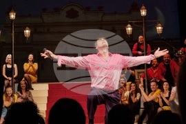 София (1 октомври 2023) Премиера на политическо сатирично кабаре „Долу народа!“ в Сатиричния театър. На снимката: Калин Сърменов.
