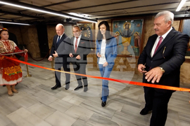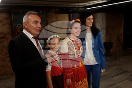 Истанбул (8 ноември 2023) Министърът на външните работи Мария Габриел (втора отляво), министърът на културата Кръстю Кръстев (дясно) заедно с генералния консул на България в Истанбул и Димитър Йотеф прерязаха лентата на изложба, подредена в криптата на Желязната църква под наслов” Желязната църква Свети Стефан и българската памет на цариградските българи“. В изложбата са подредени ценни икони, за чиято реставрация е помогнала досегашният кмет на София Йорданка Фандъкова.