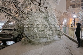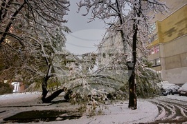 София (26 ноември 2023) Счупени клони на дърво в кв. Редута вследствие на обилния снеговалеж през последното денонощие в столицата.