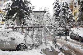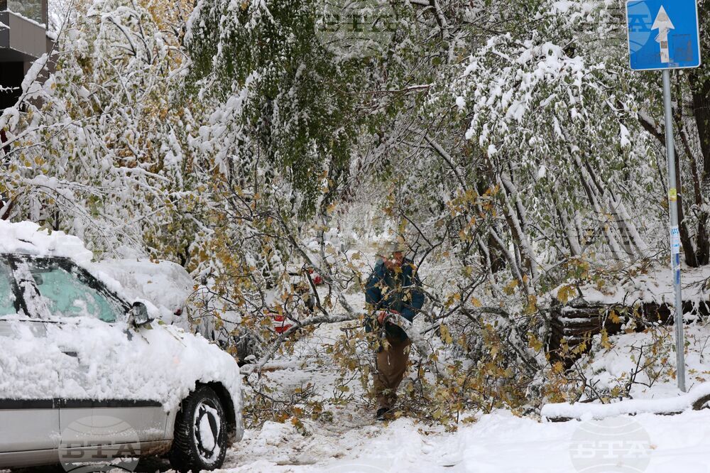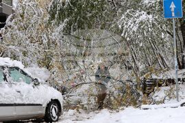 София (26 ноември 2023) Паднали дървета в столицата в резултат на обилния снеговалеж през изминалото денонощие.