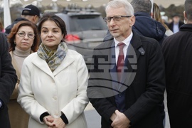 Русе (3 декември 2023) Премиерът Николай Денков (дясно) присъства на символичната първа копка на автомагистрала Русе - Велико Търново. На събитието присъства заместник-председателят на Народното събрание Росица Кирова (втора от дясно наляво) и заместник-министърът на транспорта и съобщенията Димитър Недялков (трети от дясно наляво).