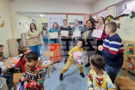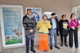 Скопие (14 декември 2023) Коледни пакети с подаръци получават децата от Център "В моя свят" за сензорна терапия в Скопие, изграден със средства по линия на Българска помощ за развитие, който посещават 72 деца от аутистичния спектър в столицата на Северна Македония.