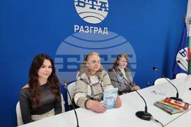 Разград (24 януари 2024) Стихиите не са подвластни на времето ни, на живота ни. Ние зависим от тях, каза писателката Снежана Желязкова (в средата). Тя представи пред журналисти в Националния пресклуб на БТА в Разград новата си книга „Човек крачи до съдбата си“. Това е шестата ѝ книга след издадените „Букварче за родители“, „Плетени мисли“, „Благодаря ти животе“, „Живея, за да обичам“ и „И днес съмва“. В пресконференцията участваха ръководителят на Танцова формация "Пулс" (дясно) и авторът на корицата на книгата Теодора Стоянова (ляво).