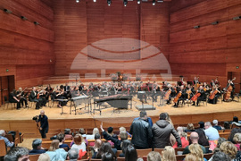 Скопие (2 февруари 2024) Концерт със заглавие "Чистина" се провежда във Филхармонията в Скопие, дирижиран от маестро Емил Табаков (в средата). В програмата са включени премиерното изпълнение на Концерт за маримба, вибрафон и тъпан от Емил Табаков със солист българската перкусионистка Татяна Колева и Симфония № 2 в ре мажор от Лудвиг ван Бетовен в изпълнение на филхармоничния оркестър на Северна Македония.