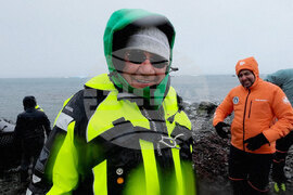 Остров Ливингстън (5 февруари 2024) Проф. Христо Пимпирев пристигна на българската антарктическа база "Св. Климент Охридски". Заедно с него бяха Н.Пр. Стоян Михайлов (посланик на България в Аржентина), флотилен адмирал проф. д.в.н Боян Медникаров – началник на Висшето военноморско училище „Н. Й. Вапцаров“ във Варна, лекарят д-р Севдалина Михайлова, Иглика Трифонова, Любов Костова и журналистката Мария Чернева. На снимката: лекарят д-р Севдалина Михайлова.