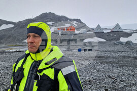 Остров Ливингстън (5 февруари 2024) Проф. Христо Пимпирев пристигна на българската антарктическа база "Св. Климент Охридски". Заедно с него бяха Н.Пр. Стоян Михайлов (на снимката) (посланик на България в Аржентина), флотилен адмирал проф. д.в.н Боян Медникаров – началник на Висшето военноморско училище „Н. Й. Вапцаров“ във Варна, лекарят д-р Севдалина Михайлова, Иглика Трифонова, Любов Костова и журналистката Мария Чернева.
