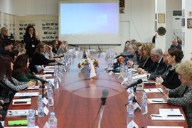 София (6 февруари 2024) Здравното образование и повишаването на здравната култура на децата и младежите се обсъждат на кръгла маса на тема: „С отговорност към здравето на българските деца“, организирана от Българския Червен кръст (БЧК). В дискусията се обсъждат съвременните предизвикателства и бъдещи действия в подкрепа на усилията на държавата, насочени към създаване на условия и механизми за постигане на цялостно физическо, психическо и социално благополучие на децата и учениците, както и към заложената в Националния план за възстановяване и устойчивост на Република България реформа за изграждане на междуинституционално сътрудничество. На снимката: председателят на Държавната агенция за бежанците Мариана Тошева.