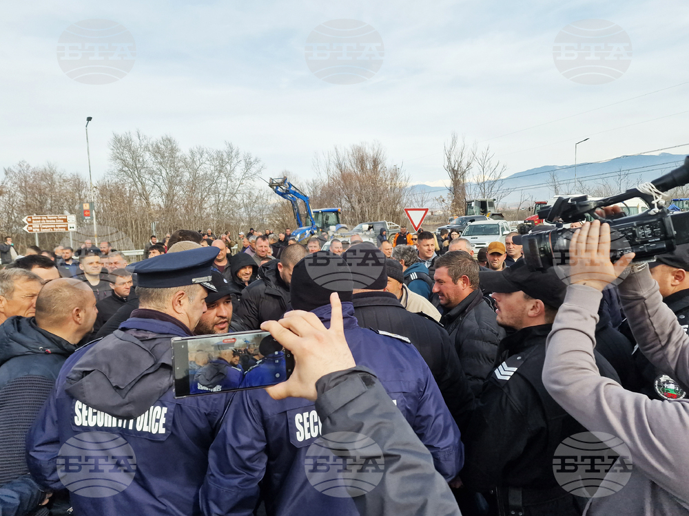 Ново Делчево (7 февруари 2024) Земеделски производители от благоевградско днес излязоха на протест край санданското село Ново Делчево. С тежки машини и животни, те затвориха пътния възел към автомагистрала „Струма“, с което бе спряно движението към граничните пунктове „Златарево“ и „Кулата“. Протестиращите застанаха очи в очи с полицията и направиха опит да се качат на магистралата.