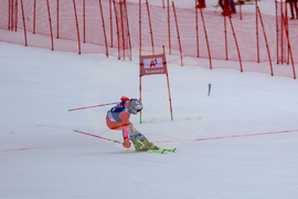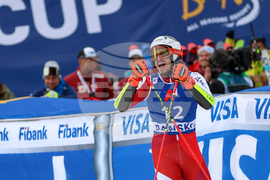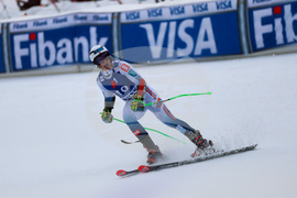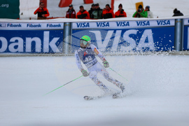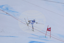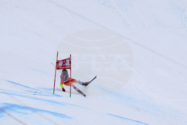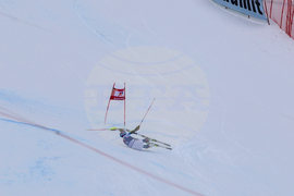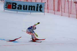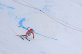 Банско (10 февруари 2024) На пистата "Бъндерица" се провежда втори манш от гигантския слалом за Световната купа по ски в Банско. На снимката: Марко Одермат.