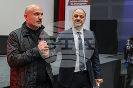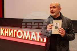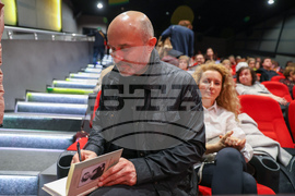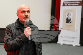 София (10 февруари 2024) Навършват се 90 години от рождението на голямата българска актриса Татяна Лолова. По този повод в любимото кино на актрисата - "Одеон", показват премиерно документалния филм "Последният спектакъл" с автори Калояна Климентова и Георги Тошев както и книгата "Татяна Лолова - от А до Я". На снимката: управителят на издателство Книгомания Илиян Андонов (дясно).