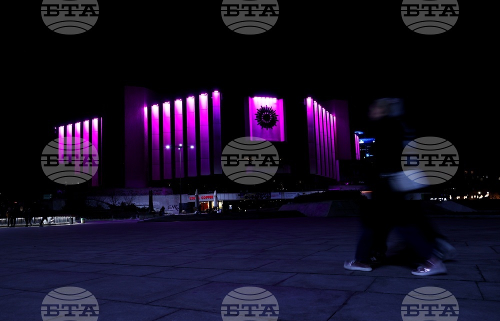 София (12 февруари 2024) Сградата на Националния дворец на културата (НДК) е осветена в лилави сметлини по повод Световния ден за борба с епилепсията.