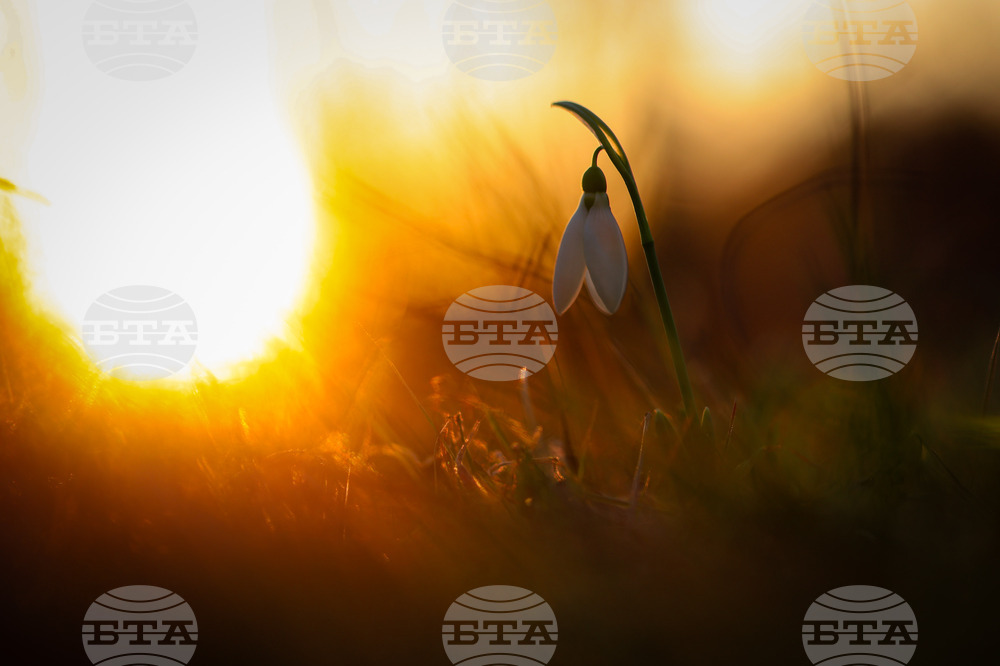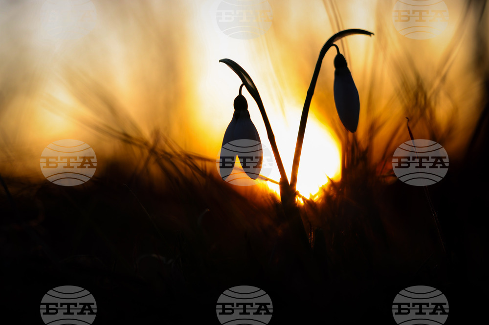 Бургас (13 февруари 2024) Кокичета по залез в района на Бургас. Топлото време през февруари е благоприятно за цъфтежа на едни от първите пролетни цветя.