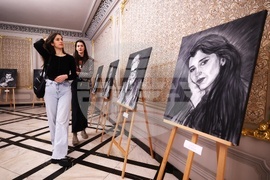 София (14 февруари 2024) Народният театър „Иван Вазов“ и художничката Силвия Богоева (ляво) представят изложбата „Защото на сърцето облекло е лицето“, посветена на спектакъла „Моби Дик“ на режисьора Диана Добрева (дясно).