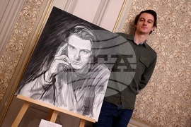 София (14 февруари 2024) Народният театър „Иван Вазов“ и художничката Силвия Богоева представят изложбата „Защото на сърцето облекло е лицето“, посветена на спектакъла „Моби Дик“ на режисьора Диана Добрева. На снимката: актьорът Пламен Димов.