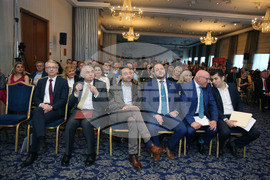 София (5 април 2022) Български форум на бизнес лидерите (БФБЛ) връчи Годишните награди за отговорен бизнес 2021 - национален конкурс за корпоративна социална отговорност и устойчиво развитие, който се провежда под мотото "Дай добър пример". На снимката: Левон Хампарцумян, председател на БФБЛ.