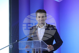 София (5 април 2022) Български форум на бизнес лидерите (БФБЛ) връчи Годишните награди за отговорен бизнес 2021 - национален конкурс за корпоративна социална отговорност и устойчиво развитие, който се провежда под мотото "Дай добър пример". На снимката: Кирил Петков, министър-председател.