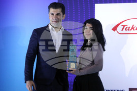 София (5 април 2022) Български форум на бизнес лидерите (БФБЛ) връчи Годишните награди за отговорен бизнес 2021 - национален конкурс за корпоративна социална отговорност и устойчиво развитие, който се провежда под мотото "Дай добър пример". На снимката: В категория „Инвеститор в знанието” проф. Николай Денков, министър на образованието и науката връчи наградата на Мая Иванова, Кока-Кола ХБК България.