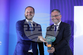 София (5 април 2022) Български форум на бизнес лидерите (БФБЛ) връчи Годишните награди за отговорен бизнес 2021 - национален конкурс за корпоративна социална отговорност и устойчиво развитие, който се провежда под мотото "Дай добър пример". На снимката: В категория „Инвеститор в околната среда” Борислав Сандов (ляво), заместник министър-председател по климатични политики и министър на околната среда и водите връчи наградата на Карел Крал, главен изпълнителен директор на ЧЕЗ България.