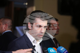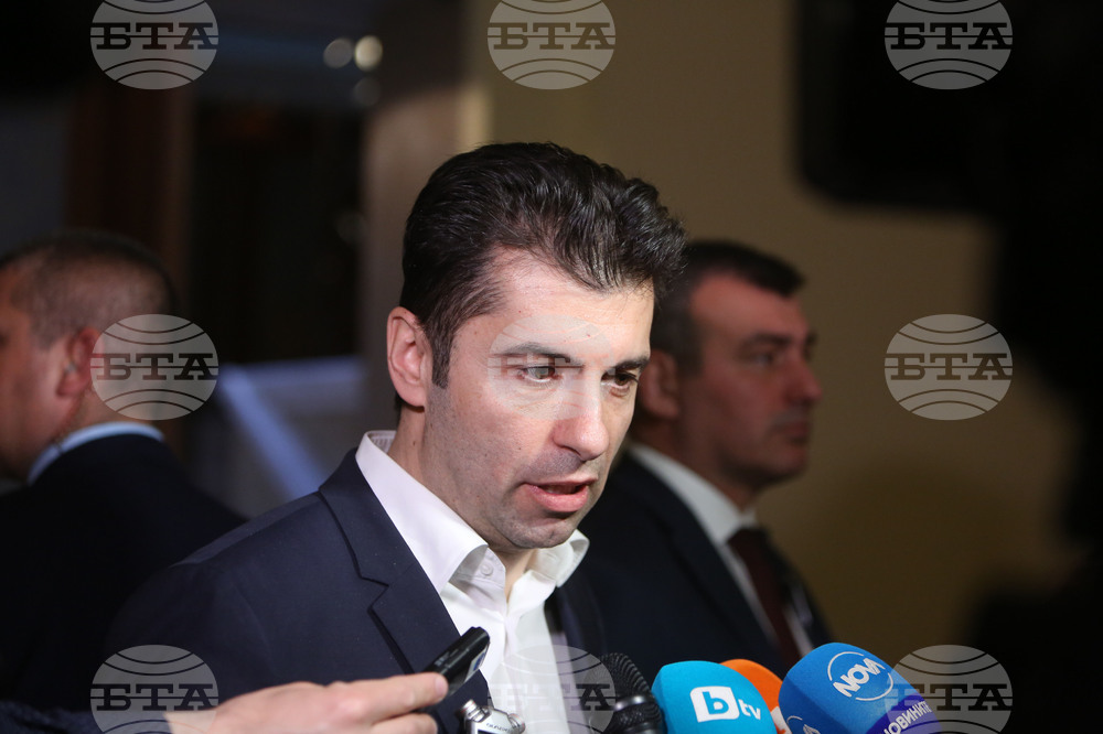 София (5 април 2022) Български форум на бизнес лидерите (БФБЛ) връчи Годишните награди за отговорен бизнес 2021 - национален конкурс за корпоративна социална отговорност и устойчиво развитие, който се провежда под мотото "Дай добър пример". На снимката: Премиерът Кирил Петков направи коментар пред медиите.