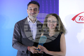 София (5 април 2022) Български форум на бизнес лидерите (БФБЛ) връчи Годишните награди за отговорен бизнес 2021 - национален конкурс за корпоративна социална отговорност и устойчиво развитие, който се провежда под мотото "Дай добър пример". На снимката: Специалната награда „Еngage“ връчи Роб Диксън, посланик на Великобритания на Станимира Георгиева, директор бизнес развитие, Интерланг.